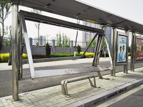 見到記者拍照,一位巡邏民警說,這個站牌是前兩天被車撞壞的,因為是新路,公交站牌還未投入使用。這條道路行人車輛稀少,肇事車輛已不知去向,也沒有目擊者。一位開車路過此處的司機說,這么漂亮的站牌,被車撞成這樣,看著讓人心疼,希望有關部門加強監(jiān)管,嚴格懲罰力度。同樣,廣大市民也應積極行動起來,愛護公共設施,維護候車環(huán)境。圖為云中北路慘遭破壞的公交站牌(張志遠 孫明)