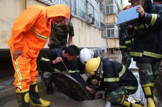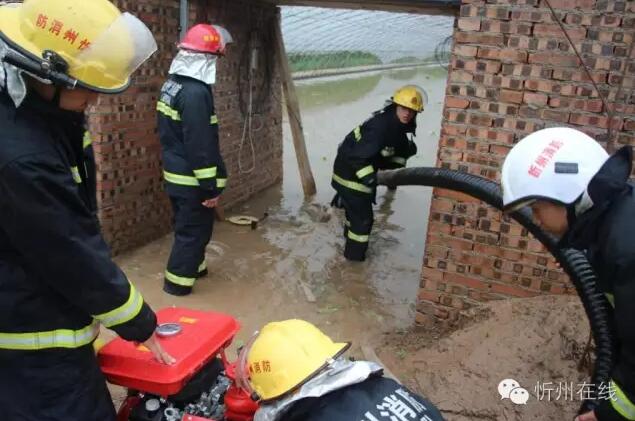 19日中午12時,忻府區(qū)中隊在得到消息后迅速趕往現(xiàn)場,在小區(qū)大門口用砂石修筑起臨時堤壩,再使用機動泵將地下室的積水抽到消防車內,最后統(tǒng)一排到路邊下水道里,經過將近四個小時的時間將險情處理完畢。