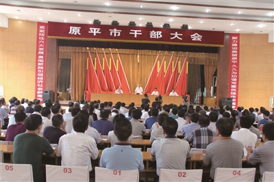 圖為原平市干部大會(huì)會(huì)場(chǎng)(趙春曉 攝)