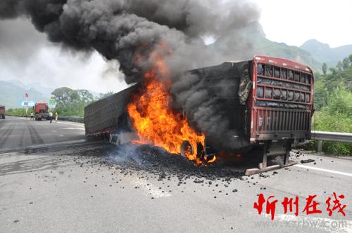半掛貨車高速自燃起火 交警緊急救援