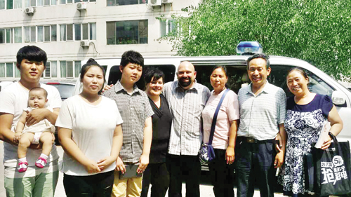 8月1日,中美兩個家庭的部分成員在山西省民政廳前合
