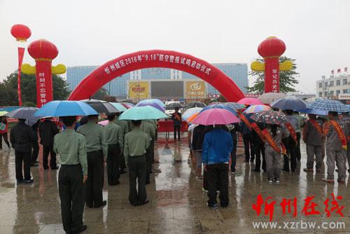 牢記歷史慘痛教訓(xùn),時刻不忘警鐘長鳴。9月18日上午10點整,隨著我市防空警報試鳴指揮部指揮長、副市長武憲堂一聲令下,忻州城區(qū)18個防空警報網(wǎng)點的警報器同時發(fā)出響徹天地的嘶鳴。市政府、忻州軍分區(qū)、市人防辦有關(guān)領(lǐng)導(dǎo)和市人防工作領(lǐng)導(dǎo)組成員單位人員及社會各界群眾冒雨在忻州城區(qū)體育廣場參加了我市“2016年‘9.18’防空警報試鳴啟動儀式”。警報試鳴活動在全市各縣(市)城區(qū)同時舉行。