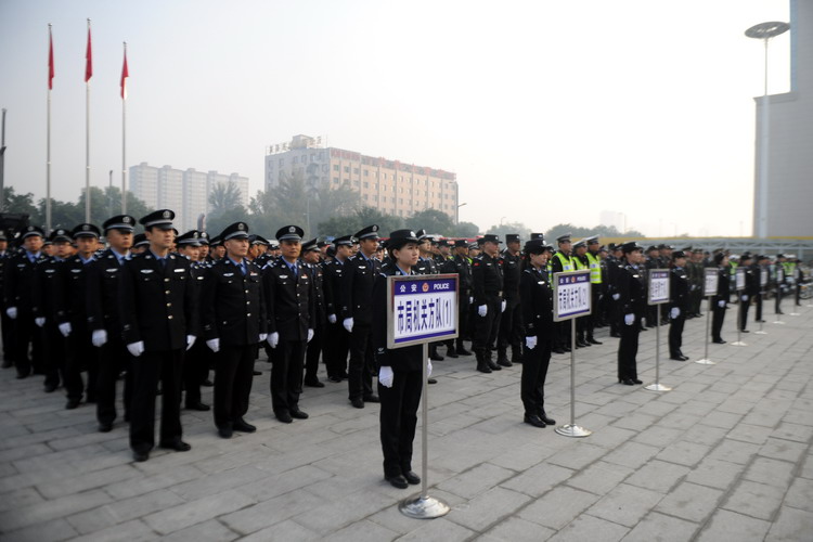 10月13日上午,全市公安機(jī)關(guān)在市客運(yùn)西站廣場(chǎng)同步舉行2016年度“服務(wù)為本、便民利民,創(chuàng)建平安滿意城”專題活動(dòng)啟動(dòng)儀式。市委副書記、政法委書記張曉峰同志出席啟動(dòng)儀式,市局局長(zhǎng)楊梅喜同志及在家黨委班子成員,客運(yùn)西站廣場(chǎng)市局機(jī)關(guān)、直屬分局、交警、消防、武警支隊(duì)共計(jì)200余人參加啟動(dòng)儀式。市局黨委委員、政治部主任王雷同志主持。
