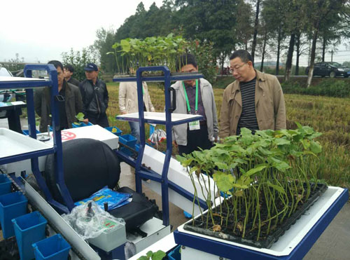 10月26日——28日,“2016年中國國際農(nóng)業(yè)機械展覽會”在武漢國際博覽中心盛大舉行。這屆展會上,我省共有4個企業(yè)參展,其中我市有兩個企業(yè)參展,即繁峙縣農(nóng)機修造廠和五臺縣城園豐農(nóng)機制造有限公司。據(jù)悉,繁峙縣農(nóng)機修造廠生產(chǎn)的電動蔬菜移栽機和五臺縣城園豐農(nóng)機制造有限公司生產(chǎn)的電動撒肥機炫酷展會,吸引眾多觀眾駐足觀看。圖為電動蔬菜移栽機。(閆建英 攝)
