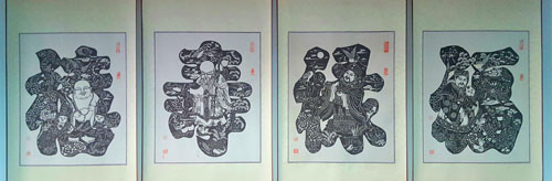 圖為榮獲“世界手工藝徽章”認(rèn)證的李斌杰創(chuàng)作的《福祿壽喜》剪紙。