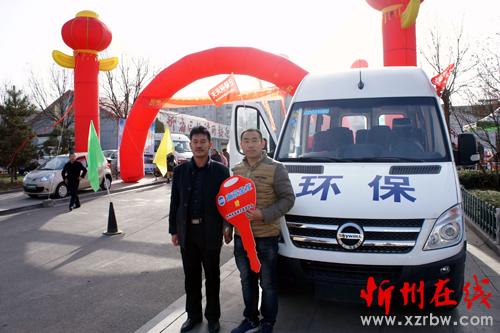 南京金龍新能源汽車忻州經(jīng)銷公司總經(jīng)理李宗偉向忻州環(huán)保志愿者協(xié)會贈送新能源汽車一輛