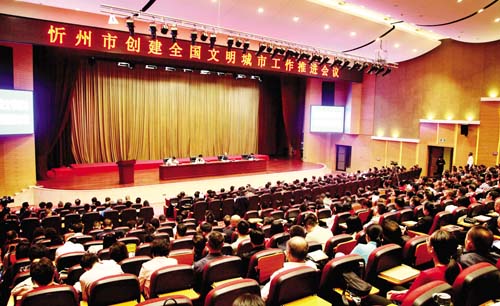 圖為忻州市創(chuàng)建全國文明城市工作推進(jìn)會議會場。趙菁 攝