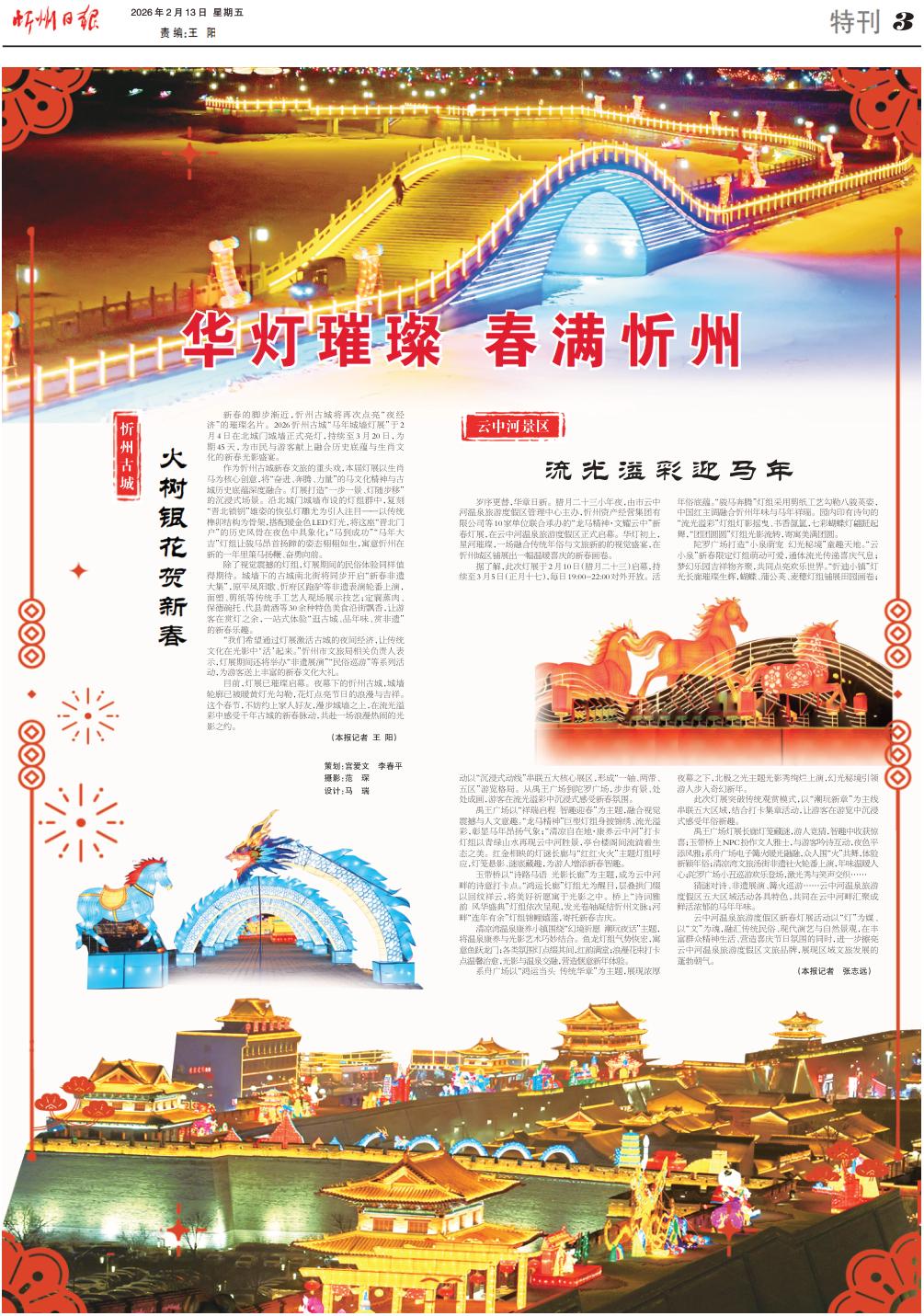 目前,燈展已璀璨啟幕。夜幕下的忻州古城,城墻輪廓已被暖黃燈光勾勒,花燈點亮節(jié)日的浪漫與吉祥。這個春節(jié),不妨約上家人好友,漫步城墻之上,在流光溢彩中感受千年古城的新春脈動,共赴一場浪漫熱鬧的光影之約。(本報記者王陽)