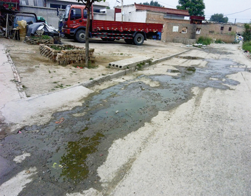城區(qū)橋東街天宇涂料廠門口,污水橫流10 多天了,南街村有人將此修好,不到一個(gè)月,污水又開始流出了,路面變成了綠色,氣味難聞。望相關(guān)部門督查治理。(一網(wǎng)友6月21日攝)