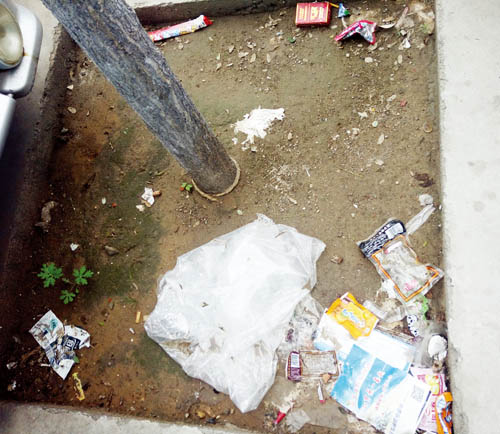 近日,記者在華榮區(qū)發(fā)現(xiàn),路旁的很多樹坑被當(dāng)成了垃圾桶,人們隨手將果皮紙屑塑料袋扔在了里面,影響市容不說也污染了環(huán)境。樹坑內(nèi)垃圾不但難于清理,而且污水滲入土內(nèi)會導(dǎo)致樹木根部和樹皮底部的腐爛。同時,長久被油污浸泡的土地會變成“ 油土”,樹木無法正常呼吸,最終導(dǎo)致死亡。馬路兩旁的行道樹不僅可以凈化空氣、美化市容市貌,在夏天的時候還能給行人提供天然的蔭涼。希望附近的居民能夠管住自己的手,不要再向樹坑內(nèi)扔垃圾,養(yǎng)成愛護(hù)環(huán)境的文明習(xí)慣。實(shí)習(xí)記者 王菲 攝