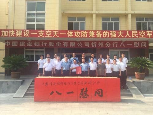 7月31日,八一建軍節(jié)來(lái)臨之際,忻州分行劉昱星行長(zhǎng)攜紀(jì)委書(shū)記陳慶鵬、副行長(zhǎng)趙彤、高級(jí)客戶經(jīng)理王平、副行長(zhǎng)郝翀平及部分部門(mén)負(fù)責(zé)人前往空軍某部開(kāi)展“軍銀攜手,共建同行”八一慰問(wèn)活動(dòng),并遞交慰問(wèn)信和慰問(wèn)品。