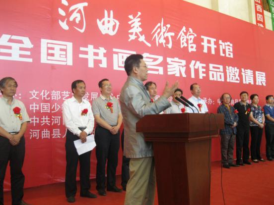 8月31日,河曲美術(shù)館開(kāi)館暨全國(guó)書(shū)畫(huà)名家作品邀請(qǐng)展開(kāi)幕儀式舉行。中國(guó)美術(shù)家協(xié)會(huì)主席劉大為題寫(xiě)了館名。著名書(shū)畫(huà)家張旭光、專(zhuān)業(yè)畫(huà)家胡寶利專(zhuān)程從北京趕來(lái)祝賀。