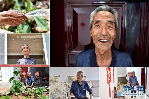 劉中秀,男,1949年出生,山西省長治市潞城區(qū)西北村人,全家5口人靠種植玉米為生,收入微薄。2011年,劉中秀因一次意外而致殘,生活更加貧困。被列入建檔立卡貧困戶后,劉中秀在村干部的幫助下開起了農(nóng)家樂,他的子女參與了貧困技能培訓(xùn)并順利就業(yè)。 右上:劉中秀肖像;左上:劉中秀在給植物澆水;左中:劉中秀站在新房的二樓看向窗外;左下:劉中秀在院子里給植物澆水;下中:劉中秀在新房里看電視;下右:劉中秀在新房里(拼版照片,6月12日攝)。 地處晉東南的山西省長治市,位于由太行山、太岳山環(huán)繞而成的上黨盆地中。在群山中、崖壁上,許多村莊自然條件惡劣,基礎(chǔ)設(shè)施落后,脫貧致富是大山深處人們的迫切心愿。 近年來,一場場脫貧攻堅(jiān)戰(zhàn),在一個個深山村打響。政府全力探索脫貧路徑的同時,山區(qū)百姓因地制宜,靠自己的雙手和智慧走上致富路,交出了一份扎實(shí)的脫貧答卷。 記者在太行山、太岳山一路尋訪,記錄下多位70歲老人的生活。這些共和國的同齡人,親歷了山鄉(xiāng)的巨變,見證著長治山區(qū)脫貧攻堅(jiān)偉大工程的一步步推進(jìn)。 新華社記者 曹陽 攝