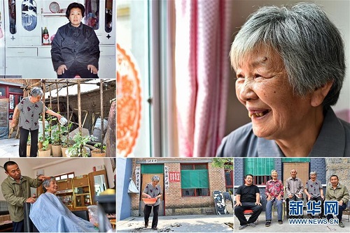 申愛苗,女,1949年出生,山西省長治市潞城區(qū)辛安村人,全家5口人靠種植9畝田地為生,2015年因丈夫和兒子相繼患病而失去收入來源,生活貧困。2016年,在當(dāng)?shù)卣膸椭拢陳勖绲膬鹤訁⒓恿嗣撠毤寄芘嘤?xùn)并在村里開了一家理發(fā)店。2018年全家脫貧。 右上:申愛苗肖像;左上:申愛苗1995年在家里的舊照;左中:申愛苗在院子里給植物澆水;左下:申愛苗讓兒子給自己理發(fā);下中:申愛苗在清理院子;下右:申愛苗(右二)和家人在院子里合影(拼版照片,6月11日攝)。 地處晉東南的山西省長治市,位于由太行山、太岳山環(huán)繞而成的上黨盆地中。在群山中、崖壁上,許多村莊自然條件惡劣,基礎(chǔ)設(shè)施落后,脫貧致富是大山深處人們的迫切心愿。 近年來,一場場脫貧攻堅(jiān)戰(zhàn),在一個個深山村打響。政府全力探索脫貧路徑的同時,山區(qū)百姓因地制宜,靠自己的雙手和智慧走上致富路,交出了一份扎實(shí)的脫貧答卷。 記者在太行山、太岳山一路尋訪,記錄下多位70歲老人的生活。這些共和國的同齡人,親歷了山鄉(xiāng)的巨變,見證著長治山區(qū)脫貧攻堅(jiān)偉大工程的一步步推進(jìn)。 新華社記者 曹陽 攝