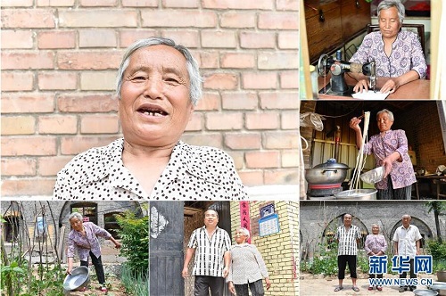 鄭引蘭,女,1949年出生,山西省長治市潞城區(qū)西靳村人,2015年因家人患病而被納入建檔立卡貧困戶?,F(xiàn)在,多項扶貧政策讓全家人的生活有了明顯改善,當?shù)卣畮椭7扛脑斓母G洞也即將完工。 左上:鄭引蘭肖像;右上:鄭引蘭在使用縫紉機;右中:鄭引蘭在廚房盛飯;右下:鄭引蘭(中)一家人合影;下中:鄭引蘭和兒子走出家門;下左:鄭引蘭在院子里給植物澆水(拼版照片,6月12日攝)。 地處晉東南的山西省長治市,位于由太行山、太岳山環(huán)繞而成的上黨盆地中。在群山中、崖壁上,許多村莊自然條件惡劣,基礎設施落后,脫貧致富是大山深處人們的迫切心愿。 近年來,一場場脫貧攻堅戰(zhàn),在一個個深山村打響。政府全力探索脫貧路徑的同時,山區(qū)百姓因地制宜,靠自己的雙手和智慧走上致富路,交出了一份扎實的脫貧答卷。 記者在太行山、太岳山一路尋訪,記錄下多位70歲老人的生活。這些共和國的同齡人,親歷了山鄉(xiāng)的巨變,見證著長治山區(qū)脫貧攻堅偉大工程的一步步推進。 新華社記者 曹陽 攝