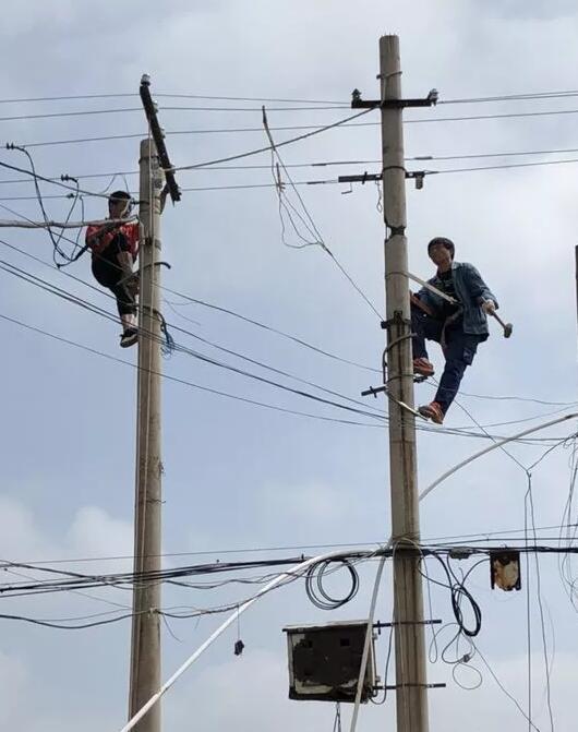 8月25日星期日,董村鎮(zhèn)電管站職工放棄休息,人員、車輛全出動(dòng),運(yùn)來新的水泥電桿,在太陽光曝曬下作業(yè),更換了傾斜開裂電桿,對(duì)線路重新進(jìn)行了整理架設(shè),徹底消除了這起安全隱患,電力職工們連口水也沒來的及喝,緊張地從上午8時(shí)許一直到中午1時(shí)許結(jié)束。這種盡職盡責(zé)忘我精神感動(dòng)著在場每一位村民,村民們紛紛豎起大拇指點(diǎn)贊。