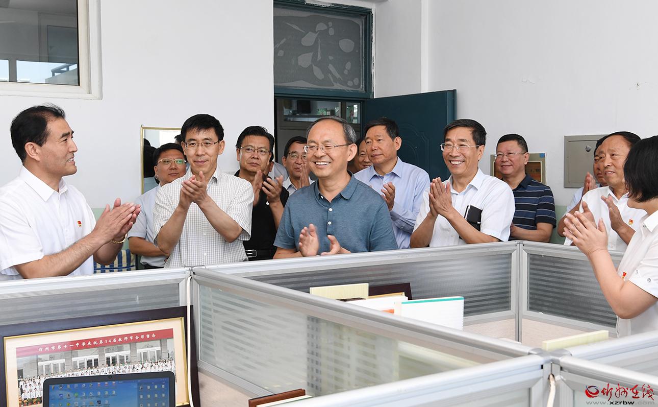 近年來,忻州一中優(yōu)生培養(yǎng)取得階段性成果,綜合辦學(xué)水平大幅提升,高考一本達(dá)線率連年在85%以上,二本達(dá)線率逼近百分之百,教育質(zhì)量享譽(yù)三晉,教學(xué)成績位列全省第一方陣,這些都離不開該校全體教師的辛勤付出。鄭連生一行詳細(xì)察看了校園環(huán)境,并到數(shù)學(xué)教研室與教師進(jìn)行交流,聽取教育教學(xué)意見,詢問工作生活上的困難。鄭連生指出,百年大計(jì),教育為本;教育大計(jì),教師為本,教師是教育事業(yè)發(fā)展的基礎(chǔ),要高度重視并切實(shí)抓好教師隊(duì)伍建設(shè),不斷提升教師的教學(xué)水平,為教師的工作和生活創(chuàng)造便利條件。各級各部門要始終堅(jiān)持教育優(yōu)先發(fā)展戰(zhàn)略,加大財(cái)政投入,加強(qiáng)政策支持,全面優(yōu)化教育發(fā)展環(huán)境,推動(dòng)忻州教育水平再上新臺階,為我市經(jīng)濟(jì)社會(huì)發(fā)展培養(yǎng)更多人才。