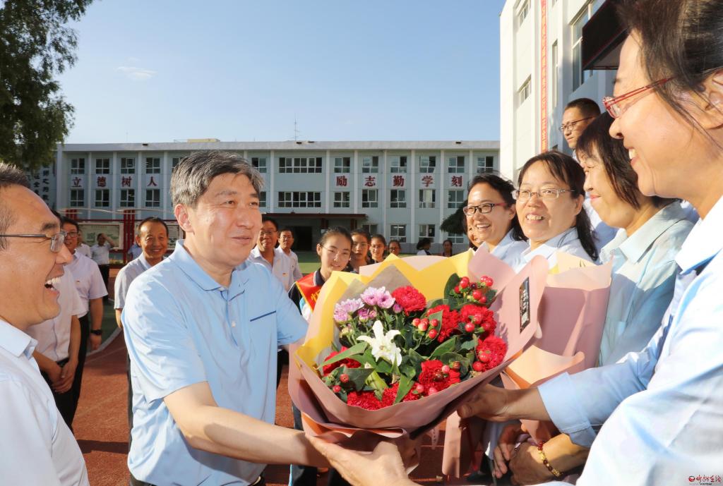 每到一處,朱曉東都向教師們致以節(jié)日問候。長征小學(xué)西校區(qū)是一所高標(biāo)準(zhǔn)規(guī)劃、高水平建設(shè)的新建學(xué)校,今年秋季學(xué)期投入使用。朱曉東察看電子圖書閱覽等教學(xué)新設(shè)施,了解學(xué)校開設(shè)的書法、歌唱、手工、足球、乒乓球、跆拳道、機(jī)器人組裝等特色教育課程,隨機(jī)檢查學(xué)生飲用水機(jī)具,向從基層選拔聘用的優(yōu)秀教師代表贈(zèng)送書籍,勉勵(lì)大家珍惜崗位,肩負(fù)起時(shí)代賦予的重任,全心全意培養(yǎng)好人才。具有40多年歷史的忻州六中辦學(xué)底蘊(yùn)厚重,近年來與時(shí)俱進(jìn)提升教學(xué)能力。朱曉東實(shí)地了解學(xué)校發(fā)展情況后,一一為教師代表獻(xiàn)上鮮花,感謝大家辛勤付出,希望學(xué)校越辦越好,讓孩子們在學(xué)校有更多收獲。忻州高級中學(xué)教學(xué)設(shè)施先進(jìn),教師隊(duì)伍素質(zhì)高、經(jīng)驗(yàn)豐富,今年學(xué)校畢業(yè)班高考再次取得好成績。朱曉東詳細(xì)了解學(xué)校歷史和往屆學(xué)生成就,鼓勵(lì)教師們放長眼光,對照更高標(biāo)準(zhǔn)繼續(xù)努力,為忻州增光添彩。