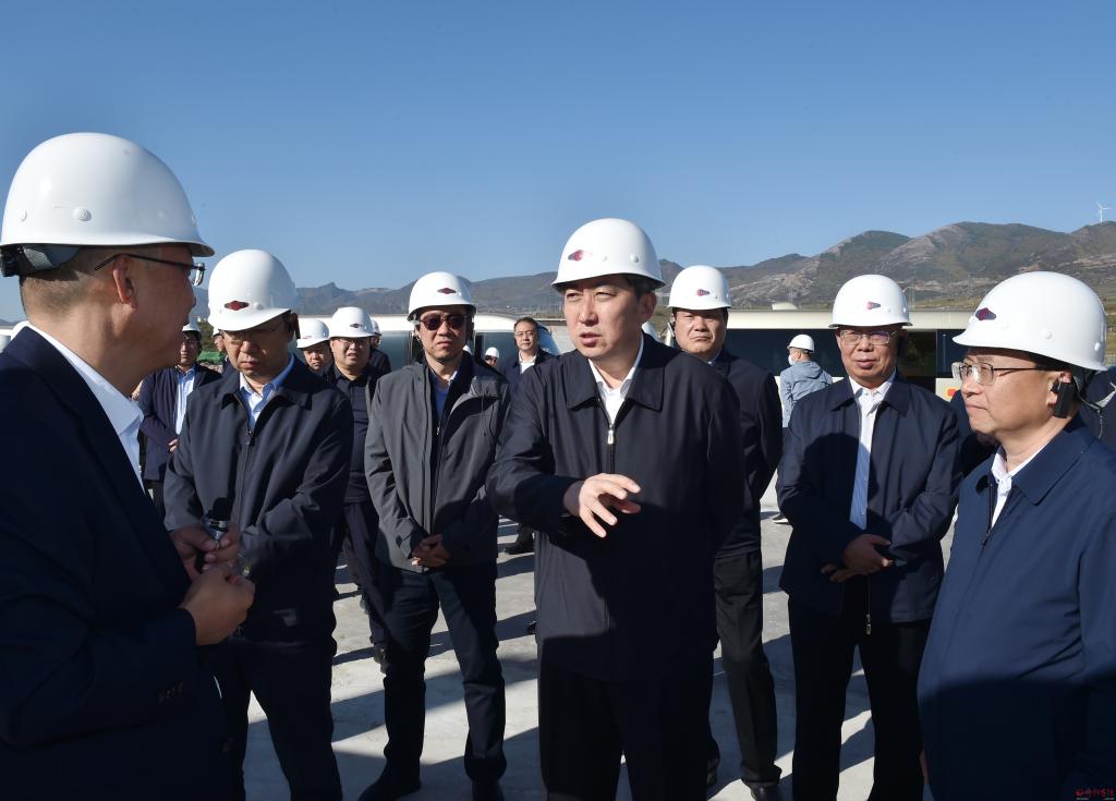 在龍泉鎮(zhèn)西口子村觀摩檢查國能朔黃鐵路神池南焊軌基地項(xiàng)目建設(shè)情況。馮曉磊 攝