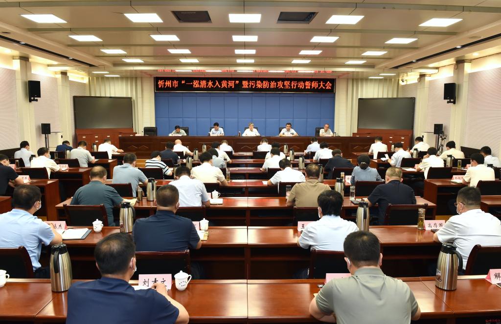 會(huì)議會(huì)場(chǎng)。馮曉磊 攝 7月4日,全市“一泓清水入黃河”暨污染防治攻堅(jiān)行動(dòng)誓師大會(huì)召開。市委書記朱曉東出席會(huì)議并講話。他強(qiáng)調(diào),要深入學(xué)習(xí)貫徹習(xí)近平生態(tài)文明思想和習(xí)近平總書記考察山西重要指示精神,進(jìn)一步統(tǒng)一思想、凝聚共識(shí),堅(jiān)決扛起黃河山西段“首站首責(zé)”,切實(shí)為“一泓清水入黃河”作出忻州貢獻(xiàn)。市委副書記、市長(zhǎng)李建國(guó)主持會(huì)議。市領(lǐng)導(dǎo)溫建軍、張宇光出席會(huì)議,市政府秘書長(zhǎng)張艮生通報(bào)“一泓清水入黃河”工作推進(jìn)情況。