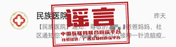 謠言:廣西壯族自治區(qū)民族醫(yī)院發(fā)布關于流腦疫苗接種通知?