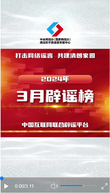 打擊網(wǎng)絡(luò)謠言 共建清朗家園 中國互聯(lián)網(wǎng)聯(lián)合辟謠平臺2024年3月辟謠榜