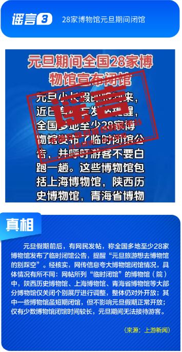 ??公共政策領(lǐng)域謠言誤導(dǎo)公眾決策?!吧绫?]有有效期限制、未到期不能換新卡”是對(duì)社保卡管理政策的誤讀,給民眾平添困擾;“28家博物館元旦期間閉館”實(shí)為少數(shù)博物館根據(jù)運(yùn)營安排所做的微調(diào),網(wǎng)帖嚴(yán)重夸大實(shí)際閉館情況,引發(fā)負(fù)面炒作;“深圳有望推行12年義務(wù)教育,高中免費(fèi)”是對(duì)現(xiàn)行政策的“超前編造”,誤導(dǎo)學(xué)生及家長群體;“全國12315平臺(tái)發(fā)布退費(fèi)公告”,則是假冒監(jiān)管機(jī)構(gòu)名義散播不實(shí)通知,為后續(xù)詐騙行為做鋪墊。