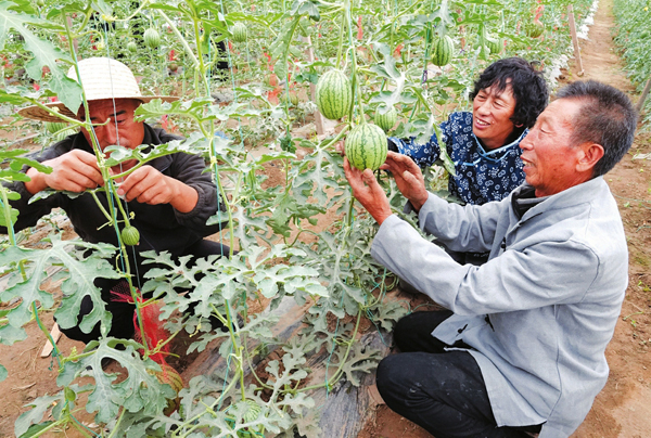 6月3日,在大同市新榮區(qū)堡子灣鄉(xiāng)得勝堡村吊瓜西瓜日光溫室內(nèi),農(nóng)民胡明、劉轉(zhuǎn)林正在對吊瓜西瓜進行維護。今年以來,得勝堡村因地制宜,建設(shè)日光溫室6棟,共計13560平方米,助推得勝堡村易地搬遷后續(xù)產(chǎn)業(yè)“高效種植園區(qū)+鄉(xiāng)村旅游”“大棚設(shè)施產(chǎn)業(yè)+鄉(xiāng)村旅游產(chǎn)業(yè)”等模式快速發(fā)展,走出了一條產(chǎn)業(yè)富民強村之路。(山西日報記者劉通 山西日報通訊員陳榮燁攝)