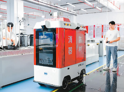 福建省福州市倉山區(qū)大力發(fā)展以智能制造為主導(dǎo)的新一代信息技術(shù)產(chǎn)業(yè),通過人才引進(jìn)、科技創(chuàng)新、強化金融服務(wù)和落實財稅等惠企政策,積極打造數(shù)字經(jīng)濟核心產(chǎn)業(yè)集聚區(qū)。圖為技術(shù)人員在福建漢特云智能科技有限公司生產(chǎn)線上調(diào)試消防智能巡邏機器人。新華社記者 魏培全攝