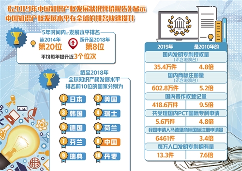 我國(guó)知識(shí)產(chǎn)權(quán)發(fā)展水平躍居全球第八