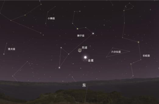 10月14日是農歷的八月廿八,月亮以小月牙的形態(tài)與金星相合,周圍有獅子座的亮星相伴。臨近日出時天空還會被曙光染上橙黃色,暗星隱去,月牙、金星和獅子座的亮星交相輝映,觀賞性還是很不錯的。由于當天月亮和金星都是在凌晨升起,所以大家需要起早欣賞這個天象。
