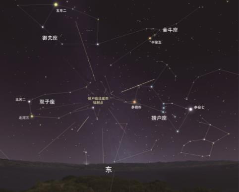 今年獵戶座流星雨極大當天為農歷初五,月亮在前半夜很早就落下了,所以月光幾乎不會對流星雨的觀測造成干擾。獵戶座流星雨的群內流星特點是速度極快而軌跡長,如果看到這樣的流星并且軌跡反方向指向獵戶座附近,那基本可以判斷為該流星雨的群內流星。