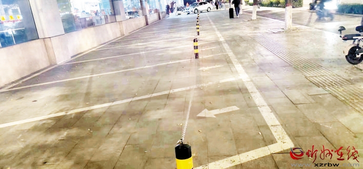臨街停車位商戶私拉繩索存隱患