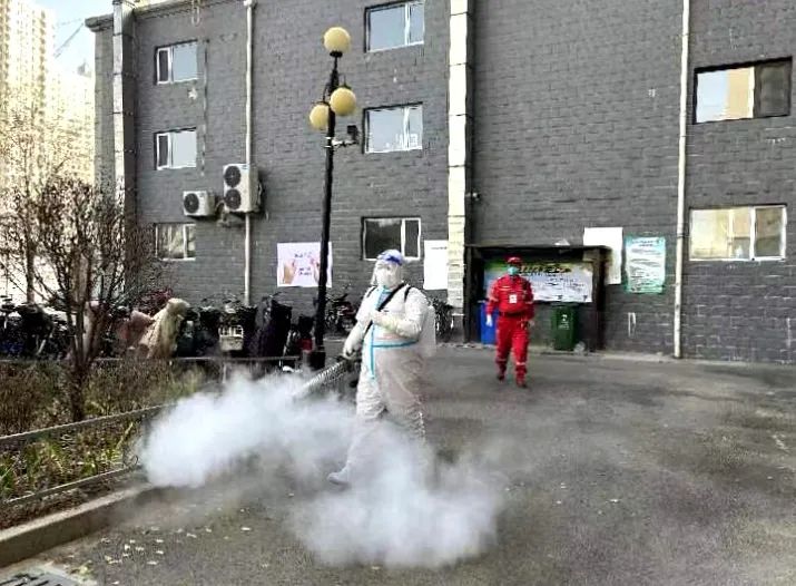 在消殺現(xiàn)場,志愿者們嚴格按照上級疫情防控的要求,分工明確,配合默契,穿上厚實密封的防護服,戴上N95口罩、手套和防護面罩,背著六七十斤的消殺噴霧器,第一時間穿梭在層層高樓、平房院落等生活區(qū)公共區(qū)域進行消殺,確保每個角落、每個區(qū)域不留死角、不留盲區(qū)。