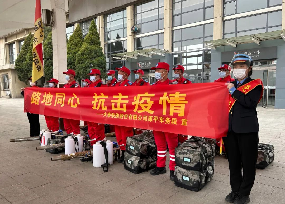 沒有從天而降的英雄,只有挺身而出的凡人。在得知大同疫情防控形勢嚴峻后,于雷就產(chǎn)生了前去支援參與防疫消殺工作的想法。經(jīng)過多方聯(lián)系,在常務副隊長趙屯生的帶領下,志愿者李俊文、張士忠、閆向陽、董斌、侯志偉、姜培平、段彥軍、冀建國趕赴大同湖東電力機務段(大同湖東電力機務段是大秦鐵路的重要組成部分,每天承擔著4萬多噸保障煤運往全國各地的任務),迅速投入消殺工作。