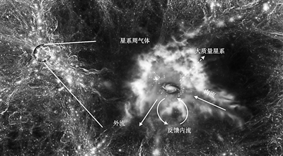 氣體的內(nèi)流與循環(huán)內(nèi)流和星系形成緊密相關(guān)。 清華大學(xué)天文系供圖 一方面,隨著恒星形成和星系中央超大質(zhì)量黑洞吸積物質(zhì),超新星爆發(fā)、活動(dòng)星系核反饋活動(dòng)等星系中的高能活動(dòng)會(huì)將星系中的重元素物質(zhì)拋射到大尺度環(huán)境系統(tǒng)中,形成星系外流。另一方面,在暗物質(zhì)暈強(qiáng)大的引力作用下,星際空間的氣體會(huì)源源不斷地回流入星系內(nèi),也就是星系內(nèi)流。因此在一系列相互作用下,星系、氣體以及它們的暗物質(zhì)暈共同組成了星系生態(tài)系統(tǒng)。 在美國(guó)夏威夷海拔4200多米的莫納克亞山頂,凱克望遠(yuǎn)鏡一直“望”著浩瀚深邃的星空,不斷探究宇宙的奧秘。 不久前,中國(guó)天文學(xué)家通過凱克望遠(yuǎn)鏡上的宇宙網(wǎng)成像器,結(jié)合全波段觀測(cè),研究了宇宙早期形成的大質(zhì)量星系“猛犸象1號(hào)”星云周圍的氣體動(dòng)力學(xué)結(jié)構(gòu),進(jìn)而模擬勾勒出該星系的生態(tài)系統(tǒng)形成圖景。相關(guān)發(fā)現(xiàn)刊登在最新一期的《科學(xué)》期刊上。 據(jù)悉,美國(guó)在其最新的天文學(xué)十年規(guī)劃中,特別將“宇宙生態(tài)系統(tǒng)”,作為未來熱點(diǎn)問題提出。其中一個(gè)重要的問題,是大質(zhì)量星系形成演化的機(jī)制問題。 事實(shí)上,像銀河系這樣的大質(zhì)量星系是如何形成并演化的,其中的大質(zhì)量天體又是如何誕生的,科學(xué)界至今也沒能作出很好的解釋。此次最新研究能否推動(dòng)對(duì)于“星系生態(tài)系統(tǒng)”及星系演化機(jī)制的理解?記者采訪了參與這項(xiàng)研究的清華大學(xué)天文系團(tuán)隊(duì)核心成員。 星系生態(tài)系統(tǒng)的外流與內(nèi)流 宇宙的基本單位是星系,星系是由數(shù)量巨大的恒星系及星際塵埃組成。例如銀河系就是一個(gè)包含恒星、氣體、宇宙塵埃和暗物質(zhì),并且受到重力束縛的大星系。 “在一系列相互作用下,星系與星系周圍氣體(星系周介質(zhì))以及它們的暗物質(zhì)暈共同組成所謂的星系生態(tài)系統(tǒng)。其中,氣體對(duì)星系的影響至關(guān)重要?!闭撐牡谝蛔髡?、清華大學(xué)博士生張世武指出。 張世武解釋說,在目前的星系演化理論框架下,星系處于巨大的暗物質(zhì)暈之中。早期宇宙中星系的典型直徑約為幾萬光年,而暗物質(zhì)暈的典型直徑約為幾十萬光年。因此,暗物質(zhì)暈的體積比星系體積大3個(gè)數(shù)量級(jí)。天文學(xué)家觀測(cè)發(fā)現(xiàn),星系與暗物質(zhì)暈之間遍布以氫原子/離子、氦原子/離子為主的氣體,這就是星系周介質(zhì)。其中,氫元素質(zhì)量占比約為70%,氦元素質(zhì)量占比約為20%。這些氣體(介質(zhì))是星系演化與星系中恒星形成的原料,質(zhì)量超過星系中恒星質(zhì)量的總和。 張世武進(jìn)一步解釋說,目前的觀測(cè)實(shí)驗(yàn)結(jié)果及理論模型認(rèn)為,在演化過程中,星系與其周圍環(huán)境密不可分。一方面,隨著恒星形成和星系中央超大質(zhì)量黑洞吸積物質(zhì),超新星爆發(fā)、活動(dòng)星系核反饋活動(dòng)等星系中的高能活動(dòng)會(huì)將星系中的重元素物質(zhì)拋射到大尺度環(huán)境系統(tǒng)中,形成星系外流。 另一方面,在暗物質(zhì)暈強(qiáng)大的引力作用下,星際空間的氣體會(huì)源源不斷地回流入星系內(nèi),進(jìn)一步促進(jìn)其中的恒星形成或超大質(zhì)量黑洞增長(zhǎng),也就是星系內(nèi)流。因此在一系列相互作用下,星系、氣體以及它們的暗物質(zhì)暈共同組成了星系生態(tài)系統(tǒng)。一些生態(tài)系統(tǒng)只存在單一的中央星系,同時(shí)也有些生態(tài)系統(tǒng)中存在著由中央星系和衛(wèi)星星系共同組成的星系群。 早期宇宙中富含重元素 天文學(xué)家普遍認(rèn)為,大質(zhì)量星系系統(tǒng)中的內(nèi)流效率極低,不可能存在普遍較強(qiáng)的恒星形成活動(dòng)。然而,對(duì)早期宇宙的觀測(cè)發(fā)現(xiàn),很多大質(zhì)量星系系統(tǒng)的中央星系存在劇烈的恒星形成活動(dòng),傳統(tǒng)理論很難解釋這一觀測(cè)現(xiàn)象,因此宇宙早期大質(zhì)量星系系統(tǒng)為何存在劇烈的恒星形成過程仍然是一個(gè)謎。 “對(duì)這類大質(zhì)量星系生態(tài)系統(tǒng)中的氣體進(jìn)行直接成像,可以幫助我們了解其中的氣體運(yùn)動(dòng)過程,從而揭開這一謎題。也就是說,在宇宙生態(tài)系統(tǒng)中,如果可以直接觀測(cè)到星系吸積氣體、形成恒星的細(xì)節(jié),將大大促進(jìn)對(duì)整個(gè)生態(tài)系統(tǒng)結(jié)構(gòu)形成的理解。但外流往往很容易觀測(cè)到,而對(duì)內(nèi)流的直接觀測(cè)實(shí)屬罕見。”此次研究的牽頭人、文章通訊作者、清華大學(xué)副教授蔡崢指出,“這是因?yàn)樾窍抵芙橘|(zhì)的面亮度很低,這就需要利用目前最大的望遠(yuǎn)鏡加上最靈敏的光譜儀,才能對(duì)其進(jìn)行觀測(cè)?!?/p> 為了直接給星系“糧食”(星系周介質(zhì))進(jìn)行直接成像,揭示早期宇宙的生態(tài)系統(tǒng),蔡崢團(tuán)隊(duì)聯(lián)合一個(gè)國(guó)際團(tuán)隊(duì),利用凱克望遠(yuǎn)鏡上的宇宙網(wǎng)成像器,結(jié)合從X射線、可見光、紅外線到射電的全波段觀測(cè),
