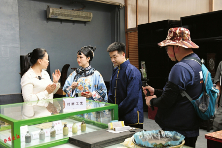 4.本報直播團(tuán)隊在唐都推光漆藝文化產(chǎn)業(yè)創(chuàng)意園直播。