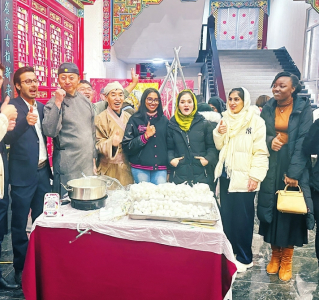 “我在山西過大年”,2月23日,正月十四,省對外友協(xié)組織30余名在晉留學(xué)生來到清徐,參加元宵節(jié)民俗體驗活動,看社火、賞非遺、滾元宵、了解老陳醋和葡萄酒文化,留學(xué)生們被中國元宵節(jié)的紅火熱鬧氣氛深深感染。來自巴基斯坦的留學(xué)生yahya告訴記者:“太有趣了,這是我第一次感受中國的元宵節(jié),和來自不同國家、文化背景的同學(xué)們一起慶祝,是我人生中美好的回憶?!睘樽屃魧W(xué)生沉浸式體驗中國年,省內(nèi)高校各顯神通,或贈送春節(jié)吉祥物、燈籠、年畫等;或組織“筆墨凝書香,春聯(lián)進萬家”手寫春聯(lián)活動;或開展“留學(xué)生中國家庭春節(jié)”體驗日,邀請留學(xué)生在中國教師家中吃團圓飯,學(xué)習(xí)剪窗花、做花燈、包餃子,感受中華傳統(tǒng)年文化和家文化魅力。山西醫(yī)科大學(xué)國際教育學(xué)院院長樊清華說:“在教授好專業(yè)知識的同時,我們要為留學(xué)生提供更多了解中國經(jīng)濟社會發(fā)展、中華歷史文化的平臺和機會,通過親身參與春節(jié)文化活動可以幫助他們感知山西、了解中國、讀懂中國?!?/p>