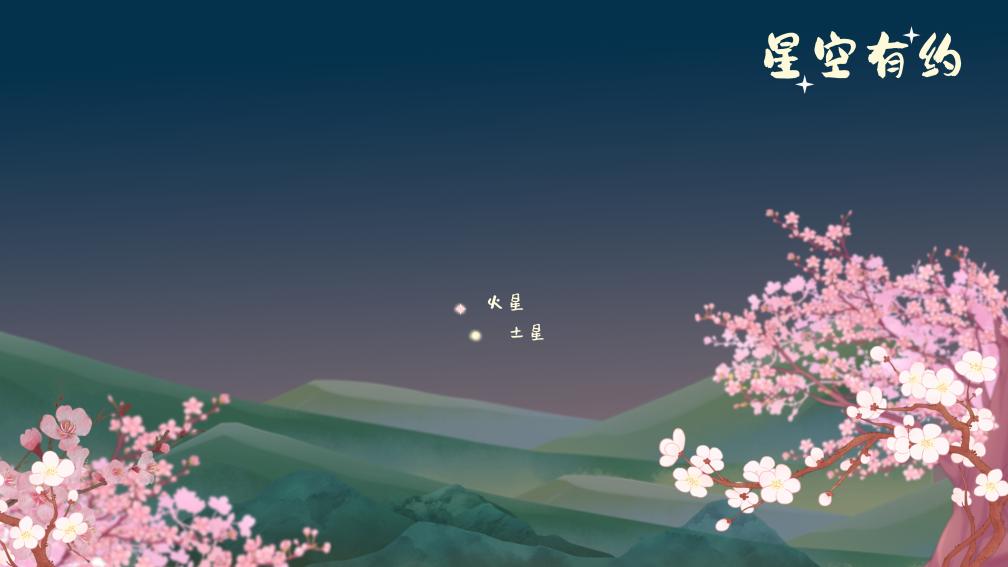 進(jìn)入4月,火星與土星在黎明前的低空越靠越近,11日最近,二者之間的角距離近乎1個(gè)滿月視直徑大小。日出前,火星與土星攜手出現(xiàn)在東南方,但地平高度有些低,可觀測時(shí)間不足1小時(shí)。