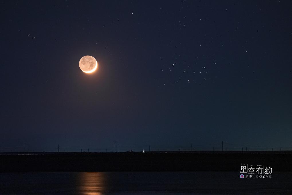 重慶星空攝影愛好者戴建峰2023年4月22日在新疆克拉瑪依拍攝的昴星團(tuán)伴月。(本人供圖)
