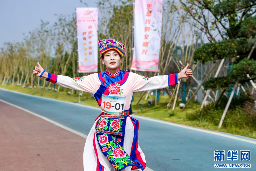 身著民族服飾的選手們在奔跑。新華網(wǎng)發(fā)
