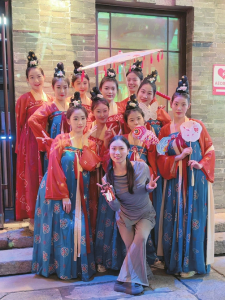 “忻青年”第一個(gè)視頻的標(biāo)題是《跟著我們在古城街道上炫起來,民族的才是世界的》。最初的賬號(hào)只是推送藝術(shù)團(tuán)在演出之余的短視頻,用于宣傳沉浸式演出《遇見秀容》。民間舞較大眾化,有熟悉的旋律,廣場舞動(dòng)作簡單又生活化,容易普及。通過短視頻讓更多的人了解忻州古城,看見《遇見秀容》團(tuán)隊(duì)演出之余的生活。