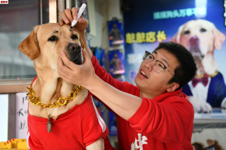 3. 為 了 讓“憨憨”在直播鏡頭里更加醒目,店主李旭戈為它畫上了一對濃眉。