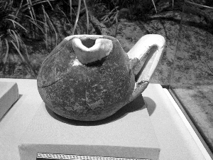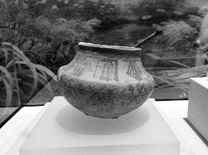高淳博物館的二樓是一個(gè)“通史”展,從6300年前薛城聚落開(kāi)始說(shuō)起。彩陶罐、黑斑玉鐲、黑陶杯、螺螄、貝殼……這些“寶貝”都是從高淳薛城遺址出土的,它們已經(jīng)有6300歲了。這些陶器,造型優(yōu)美,尤其是黑陶杯,造型堪稱(chēng)時(shí)尚,杯口還特意設(shè)置了喝水的凹槽。