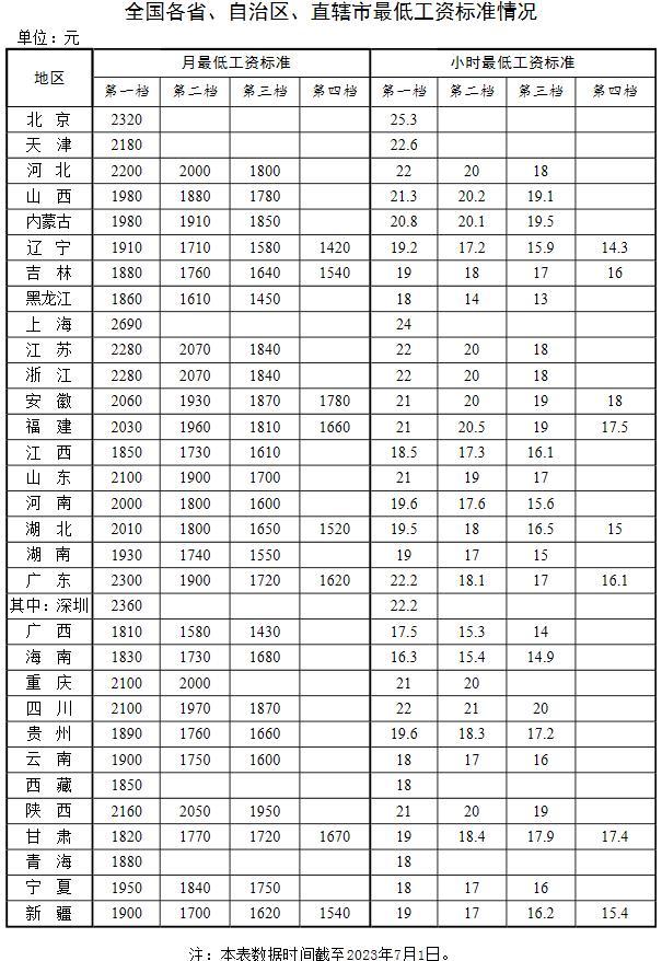 人社部官網(wǎng)近日公布了全國各省、自治區(qū)、直轄市最低工資標(biāo)準(zhǔn)情況(截至2023年7月1日),其中,剛剛上調(diào)最低工資標(biāo)準(zhǔn)的上海,月最低工資標(biāo)準(zhǔn)繼續(xù)穩(wěn)居全國首位。