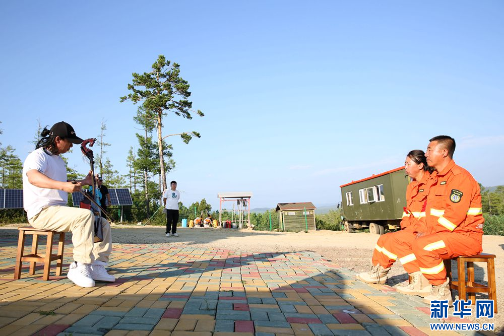 內(nèi)蒙古大興安嶺烏蘭牧騎隊員走上爬松嶺管護瞭望站,為孫華李穎夫婦獻上精彩演出(拍攝于8月12日)。新華網(wǎng)石毅 攝