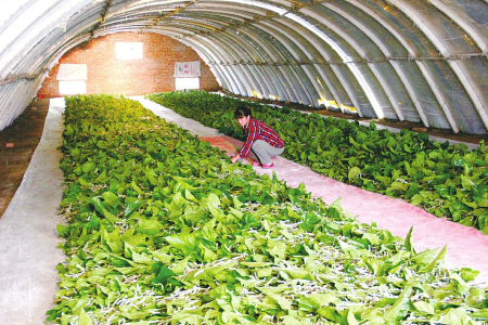 發(fā)展到現(xiàn)在,大棚養(yǎng)蠶已成為陽(yáng)城縣群眾普遍采用的實(shí)用技術(shù),因大棚建在桑園邊,節(jié)省了桑葉的運(yùn)輸成本,同時(shí)采用“地面條桑育”,一日給桑1次—2次,不僅喂養(yǎng)次數(shù)減少,而且便于方格蔟自動(dòng)上蔟,減輕了勞動(dòng)強(qiáng)度,減少了養(yǎng)蠶用工,可提高工效50%。