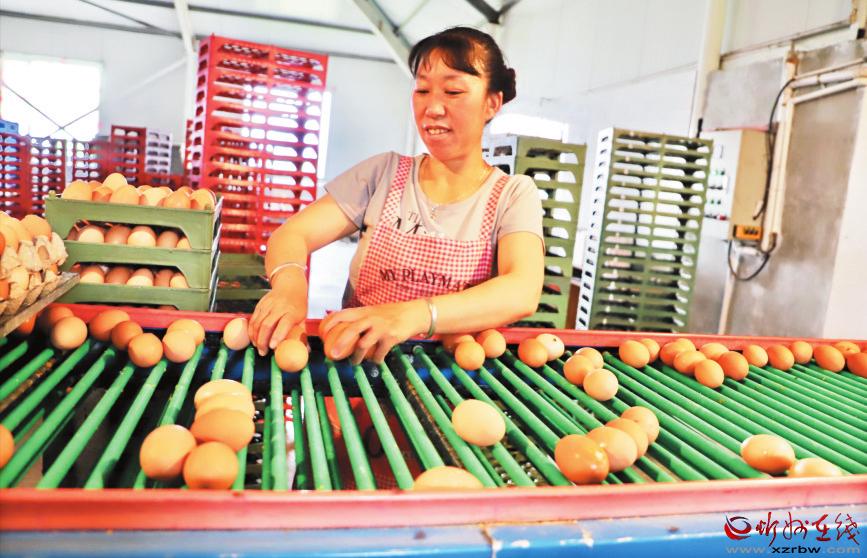 原平農(nóng)商行積極開展“三大四掃五進(jìn)”活動(dòng),讓普惠金融的觸角向鄉(xiāng)村不斷延伸,精準(zhǔn)對(duì)接縣域種養(yǎng)大戶,支持種養(yǎng)業(yè)發(fā)展。今年,該行為原平市興崞養(yǎng)殖專業(yè)合作社提供400萬元信貸資金,解決了企業(yè)流動(dòng)資金不足的問題。圖為專業(yè)合作社的工人在車間分撿雞蛋。趙 鴻 攝