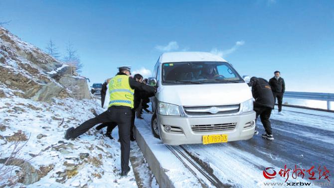 10月16日,五臺山景區(qū)境內出現(xiàn)雨夾雪天氣,伴隨著氣溫下降,部分路段出現(xiàn)積雪。當日7時許,五臺山公安分局接到游客報警稱,在景區(qū)北線鴻門巖路段,由于下雪后道路有大量積雪成冰,導致多輛大巴車和轎車受阻無法通行,請求援助。