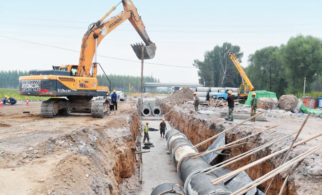 定襄縣把忻定大道建設(shè)作為全縣首要工作來抓,層層壓實責(zé)任,實行臺賬管理,確保項目順利推進(jìn)。圖為9月7日,忻定大道定襄段施工現(xiàn)場,工人們正在加快進(jìn)度鋪設(shè)涵管。 (張玉虎 攝)